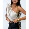 top bluzka asymetryczna odkryte ramię róża beż