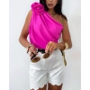 top bluzka asymetryczna odkryte ramię róża fuksja