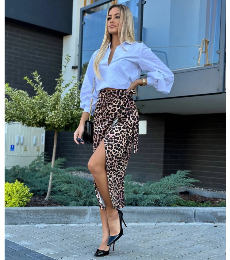 Wiązana spódnica midi z bawełny sprawdzi się na różne okazje. Dzięki wiązaniu można ją idealnie dopasować do swojej sylwetki. Z koszulą Grace panterka stworzy energetyczny i romantyczny komplet.